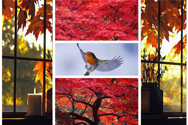 The rising sun reflects fire red upon the glass pane of a bedroom window on the east side of the house behind mine.