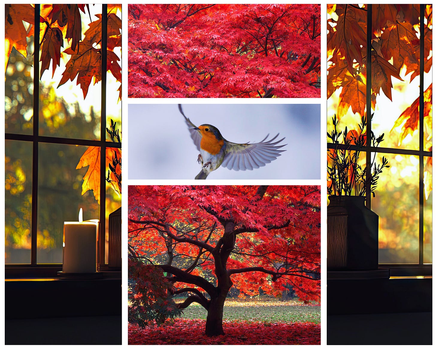 The rising sun reflects fire red upon the glass pane of a bedroom window on the east side of the house behind mine. Crimson conflagration as predawn light sets the leaves of a Japanese maple ablaze. There is something painful and exalted in looking out of the same window daily, searching for poetry, meaning, or peace. It can never really be the same window. Like the old saying about stepping into a river, you can’t look out of the same window twice. You are not the same person. It is not the same world outside.