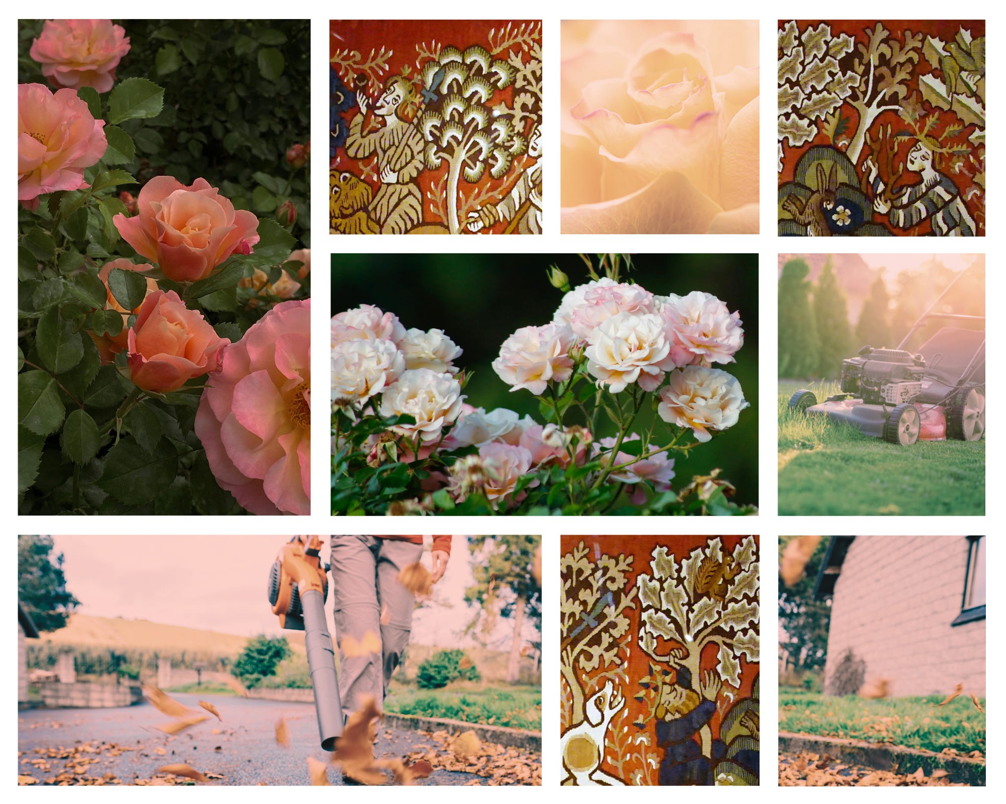 I watch birds chase each other across the blue sky. A breeze pushes a wind chime to sway and call softly. The leaf blower nearly drowns it out completely. It’s the toll one must pay to live in the beauty and peace of the suburbs. There is almost always a leaf blower, a lawn mower, or a chainsaw at work somewhere. I endeavour to regard their drone as an essential element of the sweetest music.