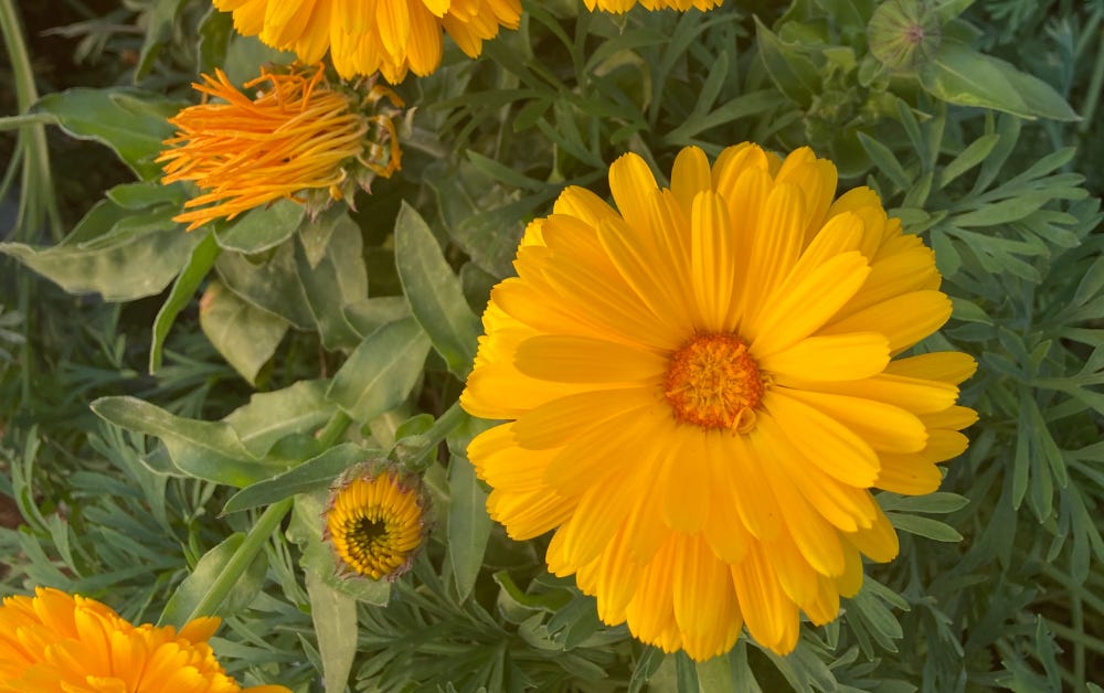 I have a crown of flowers from last spring still decorating my lamp. They’re from before the hiatus. Now the vernal equinox approaches. There are new flowers growing.